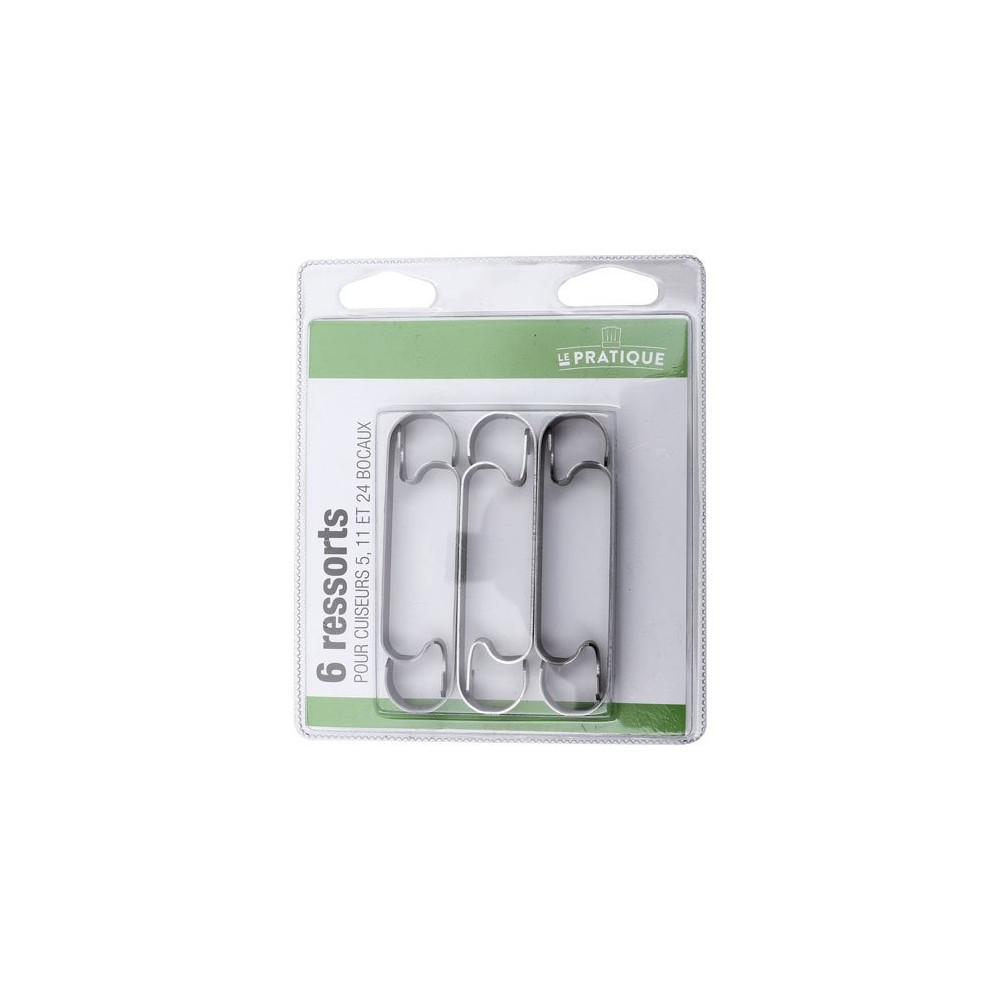 Ces ressorts de remplacement sont des accessoires de précision, pensés pour s'adapter parfaitement aux cuiseurs Le Parfait. Leur rôle est de maintenir fermement les bocaux en place pendant toute la durée du cycle de stérilisation, évitant ainsi tout mouvement susceptible de compromettre l'étanchéité des fermetures. Le lot est présenté sous coque plastique brochable, pratique pour le rangement et l'achat en rayon.