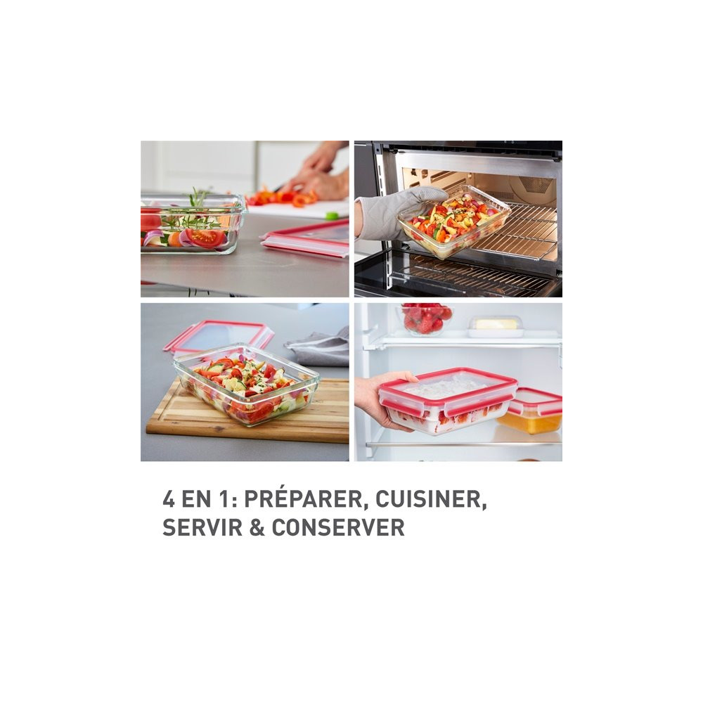 Retrouvez l'ensemble de la gamme Masterseal Glass chez Brikoleur pour composer votre set de conservation sur mesure. Lors du passage au four, retirez toujours le couvercle et assurez-vous que la boîte est à température ambiante avant de l'enfourner pour éviter tout choc thermique.