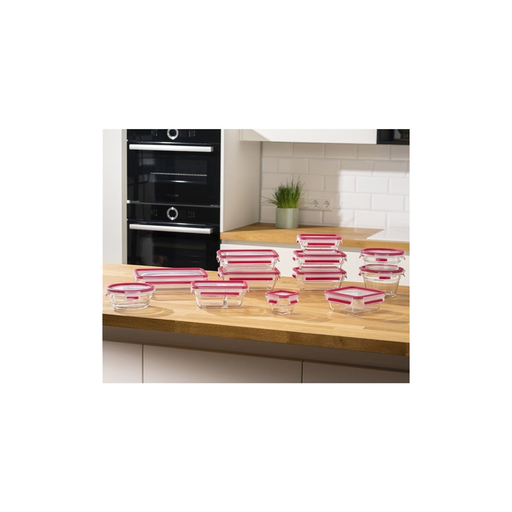 Existe en plusieurs tailles Boîte de conservation rectangulaire 1,3 L - Masterseal Glass - La solution idéale pour toutes les situations ! - Du four ou du micro-ondes, à la table, au réfrigérateur ou au congélateur, ces boîtes de conservation en verre MasterSeal sont la solution parfaite pour chaque situation ! - La conception améliorée de MasterSeal comprend un bord renforcé et un rebord d'empilage spécial qui garantissent un empilage sûr, adapté et stable des récipients de même taille, ainsi q