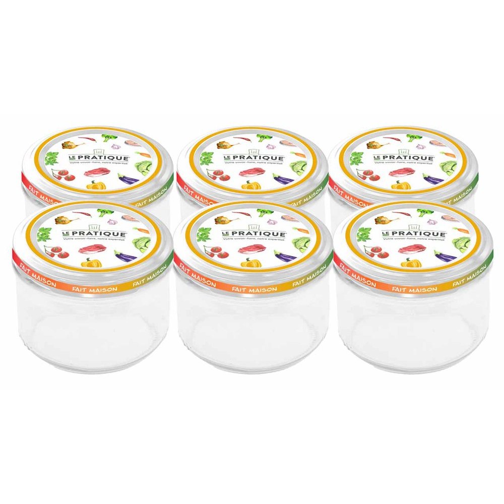 Pratiques et bien pensés, les bocaux Le Pratique 200 ml Ø82 mm sont vendus en pack de 6 et s'adressent à tous ceux qui souhaitent conditionner des portions individuelles avec soin. Leur format compact de 200 ml est idéal pour les purées de bébé, les terrines, les sauces, les confitures artisanales ou encore les petites portions de légumes ou de viande en conserve.
