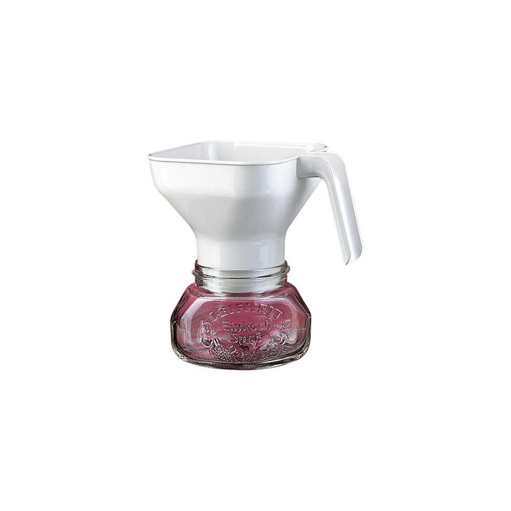Fabriqué en plastique robuste de qualité alimentaire, cet entonnoir se distingue par son large diamètre d'entrée de 13 cm, qui permet d'accueillir facilement les fruits et légumes entiers ou en morceaux. Sa poignée ergonomique intégrée assure une prise en main stable et confortable, même lorsque les préparations sont chaudes. Il est parfaitement adapté aux bocaux à conserve de la gamme Leifheit.