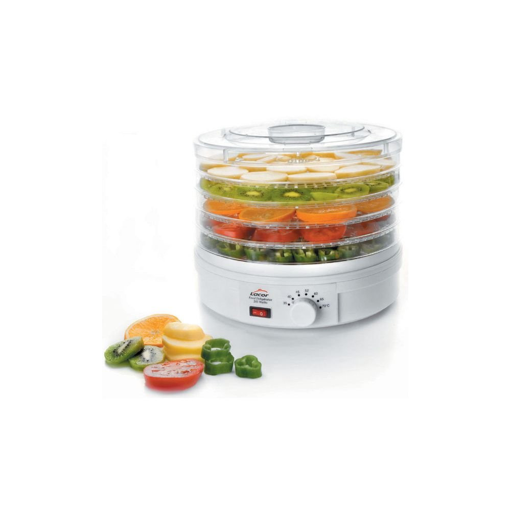 Adoptez une alimentation saine et économique avec le déshydrateur 5 plateaux LACOR coloris blanc (réf. 69123). Cet appareil permet de déshydrater facilement fruits, légumes, champignons, viandes, herbes aromatiques et bien d'autres aliments, afin de les conserver naturellement tout au long de l'année, sans additifs ni conservateurs.