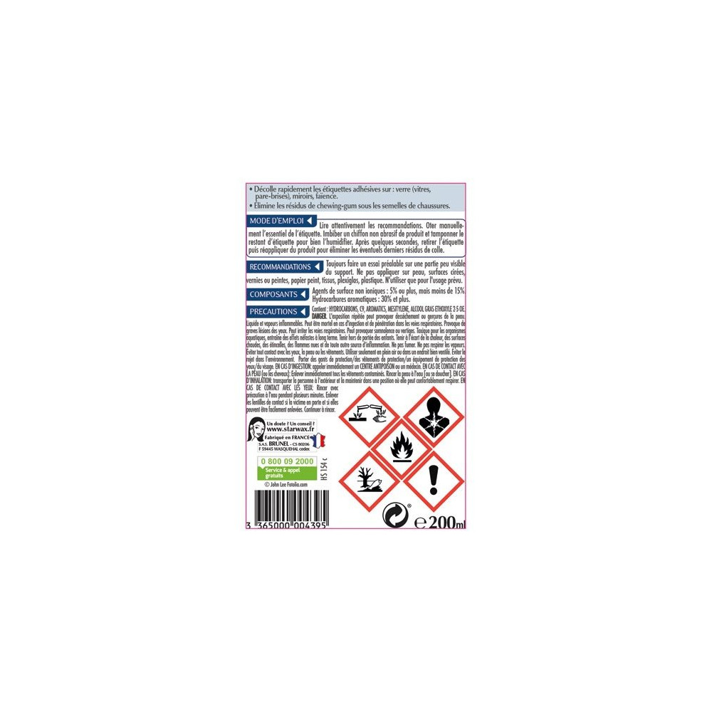 Le décolle adhésifs de 250 g de la marque STARWAX est efficace et pratique, il facilite le décollement des étiquettes, codes-barres sur verre, miroirs, vitres, pare-brise, faïence. Il dissout les résidus de colle sans les étaler.