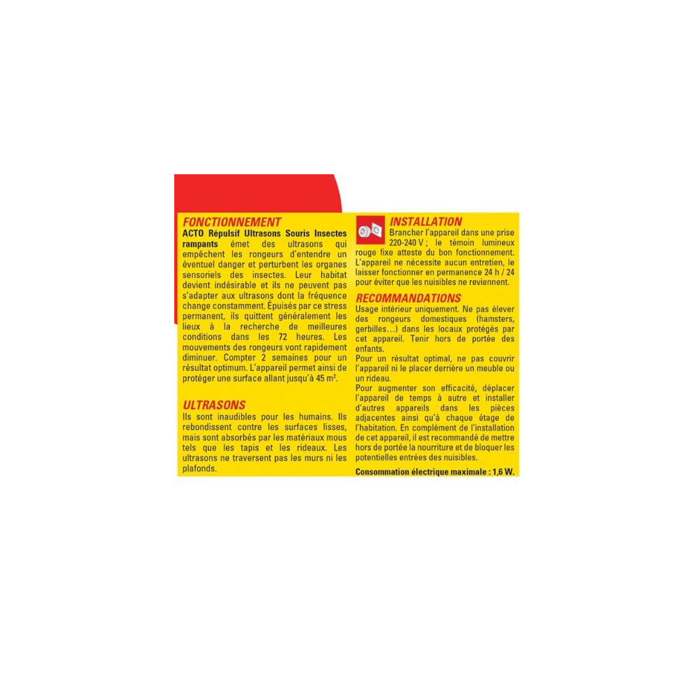 Pour un résultat optimal, placez l'appareil dans un espace dégagé, sans obstacle majeur entre lui et les zones de passage des rongeurs. Brikoleur vous propose cet appareil ACTO comme première ligne de défense contre les infestations de souris, idéalement combiné avec d'autres dispositifs si la surface à traiter est plus importante.