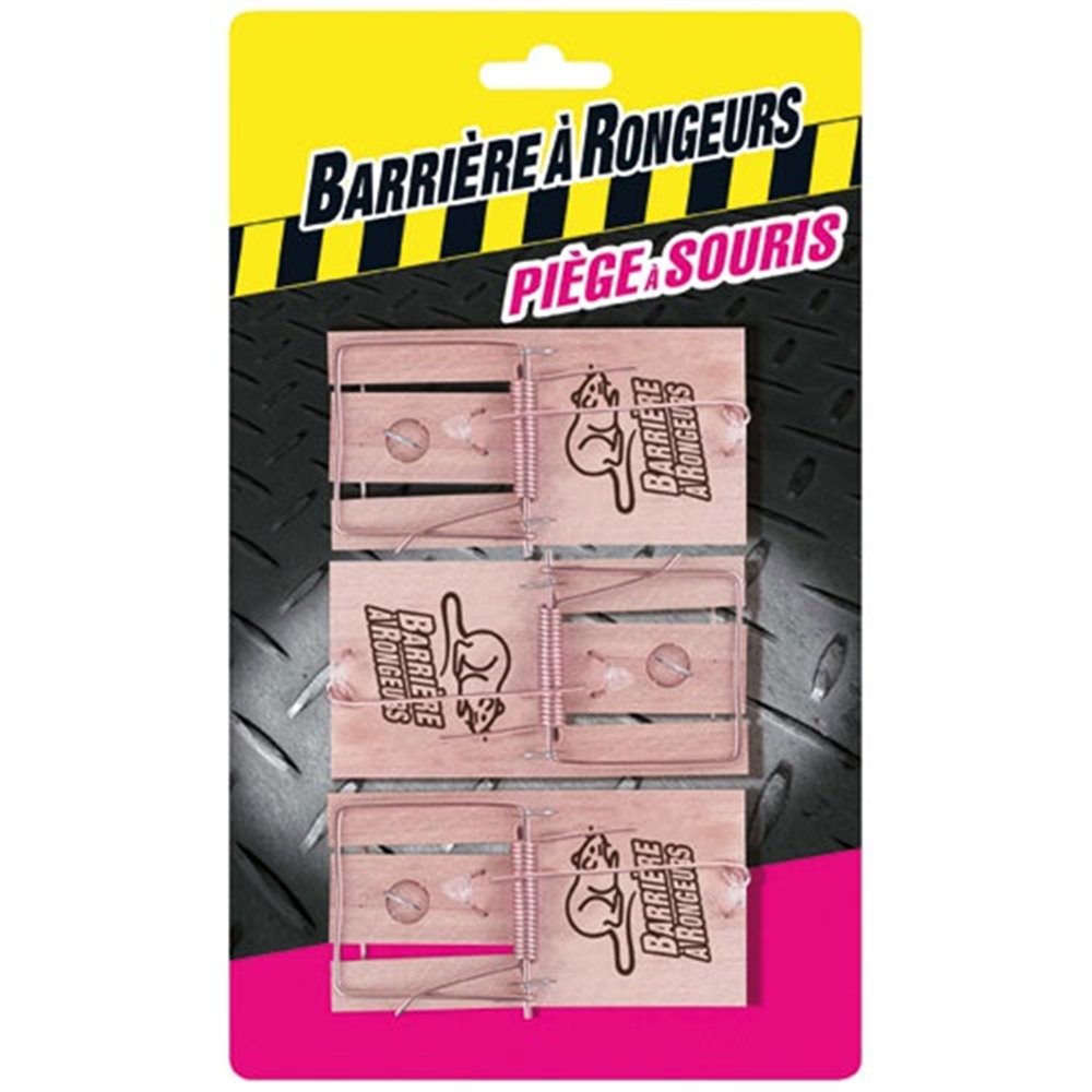 3 pièges à souris en bois. Avec crochet de fixation pour y déposer un appât tendre et appétissant (pain, fromage, chocolat, fruit ). Permet d'identifier les rongeurs à éliminer pour déterminer le traitement chimique approprié.