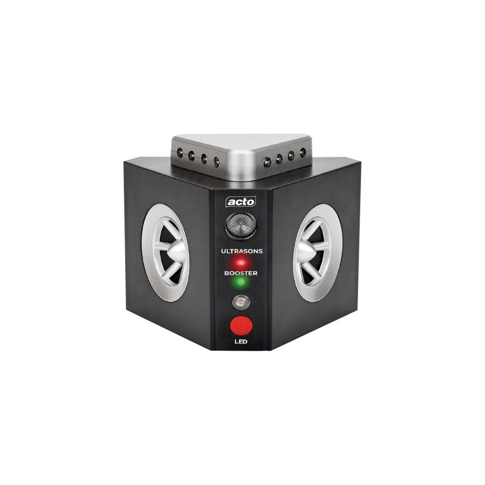 Sa puissance repose sur une combinaison technologique redoutablement efficace : 2 haut-parleurs ultrasoniques associés à un booster de signal et à un flash effaroucheur à 360°. L'action conjuguée de ces trois technologies perturbe les sens des nuisibles sur une surface de 300 m², les forçant à quitter les lieux sans retour possible.