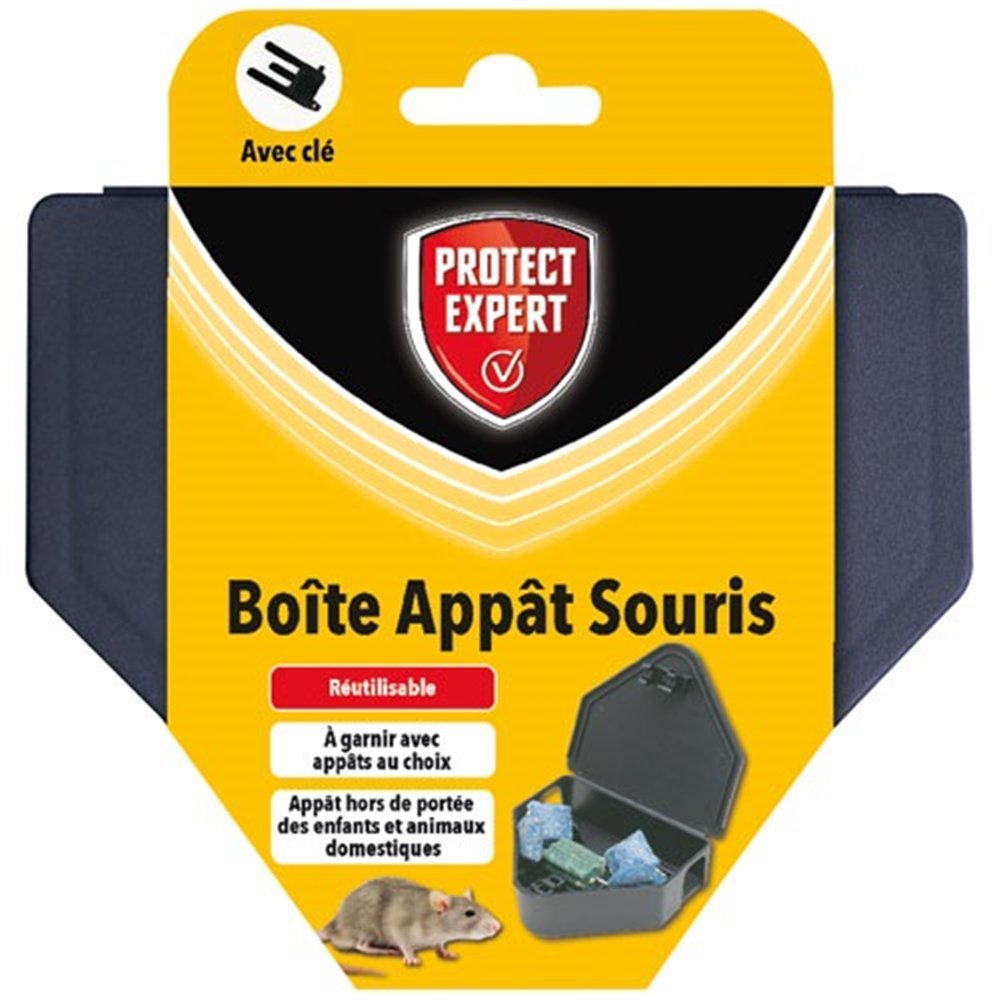 Pour lutter contre les souris de manière ciblée et sécurisée, la boîte à appât Protect Expert souris avec clé de fermeture est un dispositif conçu pour piéger efficacement sans exposer l'entourage au risque d'intoxication. Compacte et robuste, elle se pose discrètement dans les zones infestées et agit en continu.