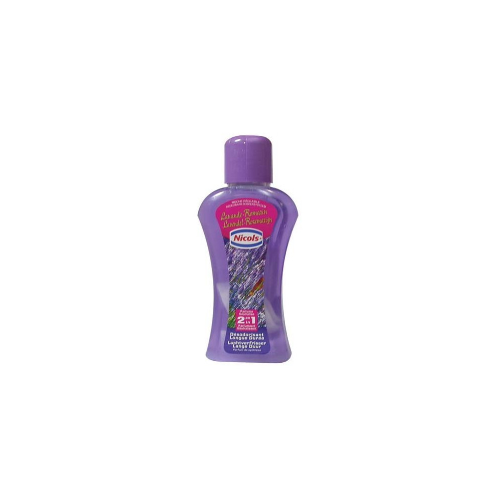Purifiez et embaumez votre intérieur avec le désodorisant à mèche NICOLS format 375 ml aux senteurs naturelles de lavande et romarin. Ce désodorisant 2 en 1 ne se contente pas de masquer les mauvaises odeurs : il les neutralise en profondeur tout en diffusant un parfum délicat et rafraîchissant, pour une atmosphère saine et agréable dans toutes les pièces de la maison.