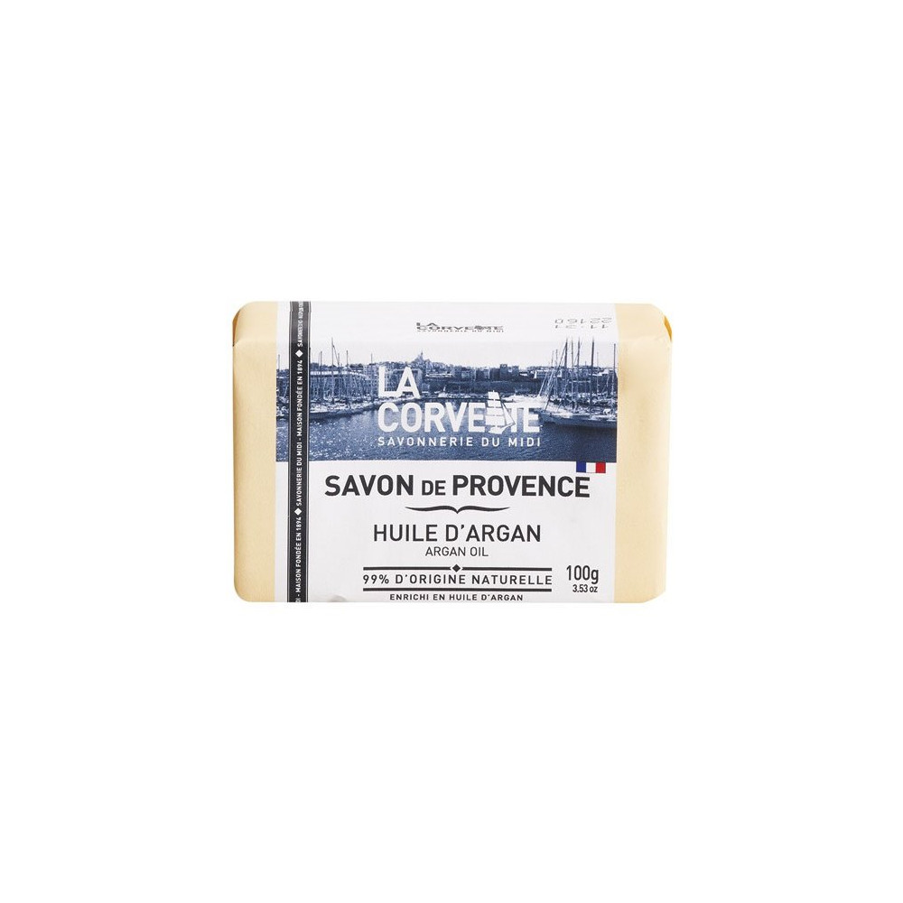 Reconnue pour ses propriétés nourrissantes et réparatrices, l'huile d'argan s'invite dans cette savonnette de Provence LA CORVETTE 100 g pour transformer chaque geste de lavage en véritable soin. Fabriquée à Marseille dans la plus pure tradition, cette savonnette allie efficacité nettoyante et douceur sur la peau.