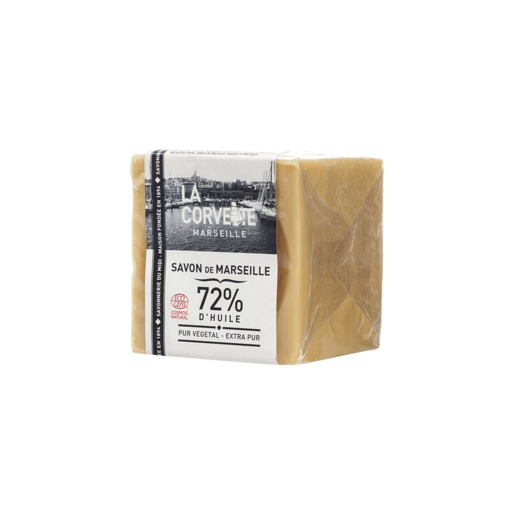 Véritable icône du patrimoine savonnier français, le Savon de Marseille Extra Pur La Corvette se présente sous forme de cube de 200g, fidèle à la tradition artisanale qui a fait la renommée de ce produit depuis des générations. Fabriqué à partir d'huiles exclusivement végétales, il incarne la simplicité et l'efficacité à l'état pur.