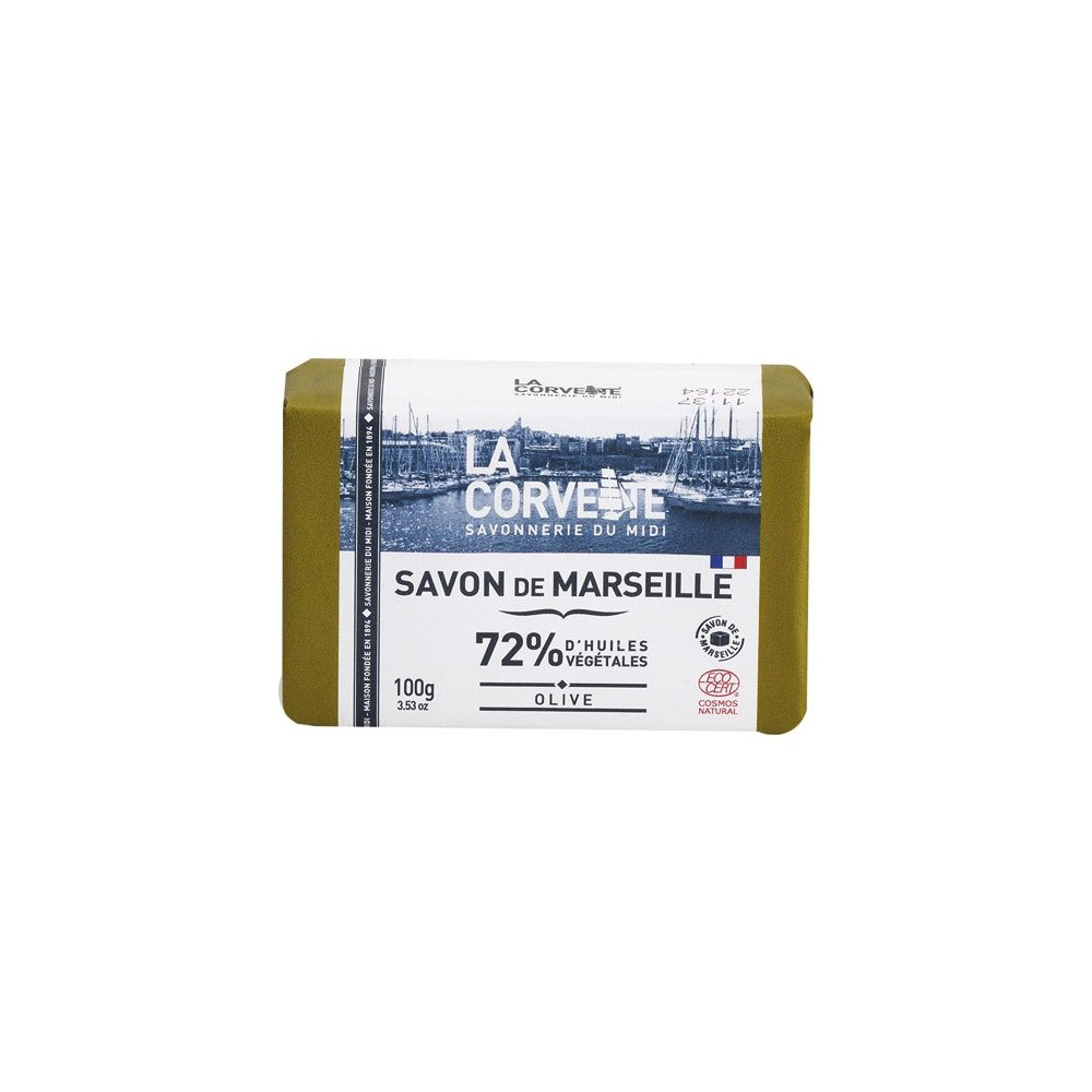 Authentique ambassadeur du savoir-faire savonnier français, le Savon de Provence à l'Olive de LA CORVETTE en format 100 g séduit par sa douceur et la qualité de ses ingrédients naturels. Fabriqué à Marseille, ce savon perpétue une tradition provençale exigeante, en s'appuyant sur une formulation à base d'huiles végétales pour respecter la peau tout en la nettoyant efficacement.