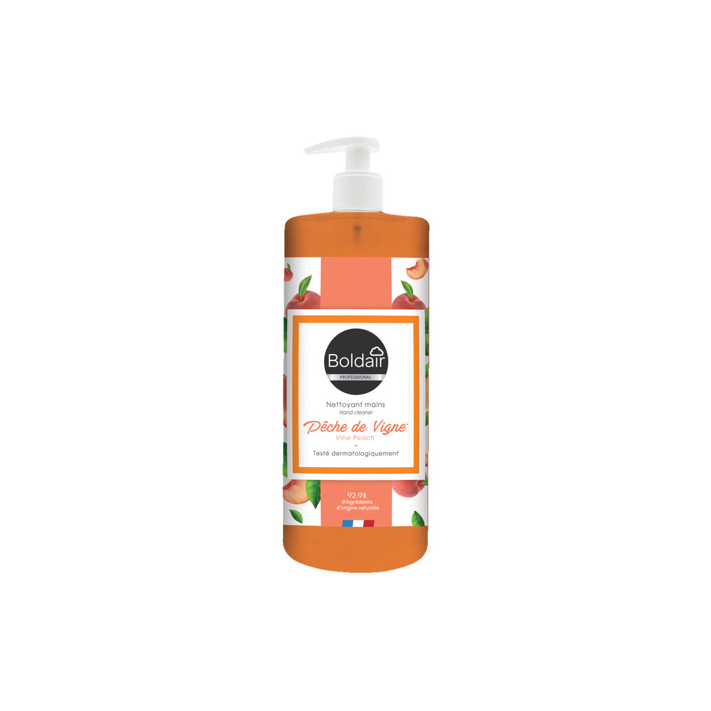 Le Savon Nettoyant Mains Pêche de Vigne BOLDAIR est une solution d'hygiène 93% naturelle formulée pour répondre aux exigences des environnements professionnels intensifs. Son parfum délicat de pêche de vigne apporte une touche agréable au geste quotidien du lavage des mains, sans jamais agresser la peau même lors d'utilisations répétées tout au long de la journée.