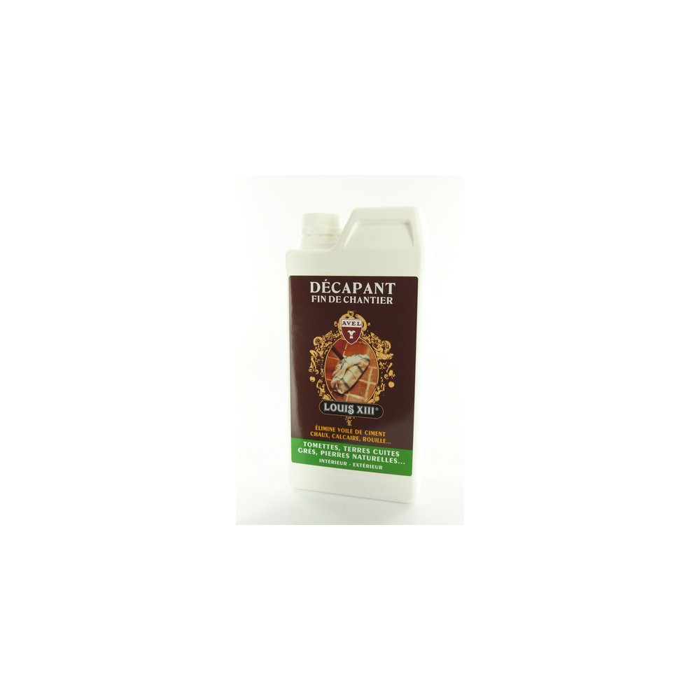 Le Décapant Fin de Chantier Louis XIII en format 1L est un nettoyant de surface professionnel conçu pour éliminer efficacement les résidus tenaces laissés après les travaux : voiles de ciment, dépôts de chaux, plâtre, calcaire, salpêtre et traces de rouille. Sa formulation sans acide chlorhydrique en fait un produit plus respectueux des supports sensibles tout en conservant une efficacité remarquable.