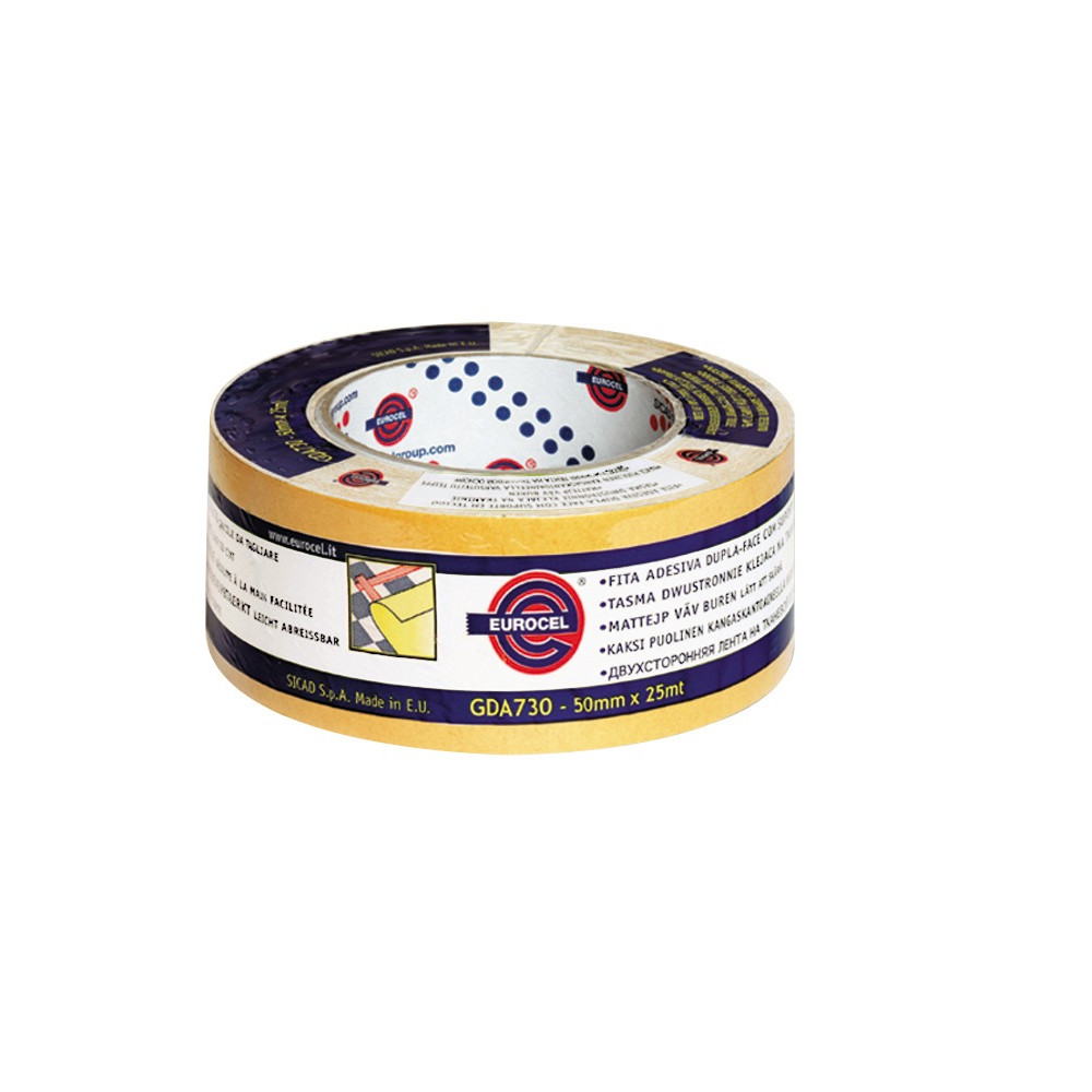 Pour la pose de moquettes, de sols souples ou de tout revêtement sur surface irrégulière, l'adhésif double face toile EUROCEL, format 50 mm x 25 m, s'impose comme un choix technique de premier plan. Sa structure en toile lui confère une résistance mécanique supérieure aux doubles faces en film, particulièrement adaptée aux contraintes des surfaces rugueuses et des sols très sollicités.
