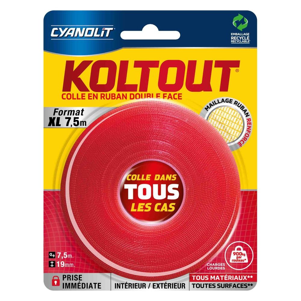 Le Ruban XL Double Face Koltout « Colle Dans Tous Les Cas » est la solution de fixation adhésive pensée pour les chantiers exigeants et les réparations du quotidien. Disponible en largeur 19 mm pour une emprise optimale, ce ruban de 7,5 mètres offre une longueur généreuse adaptée aussi bien aux petits travaux ponctuels qu'aux projets plus ambitieux.