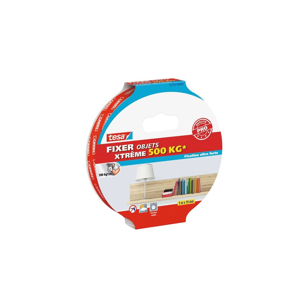 Quand les fixations classiques atteignent leurs limites, le double face TESA Fixer Objets Xtrême prend le relais avec une capacité de fixation annoncée à 500 kg. Ce rouleau de 5 m x 19 mm est conçu pour les fixations intérieures et extérieures les plus exigeantes, offrant une tenue ultra-solide sans perçage ni visserie.