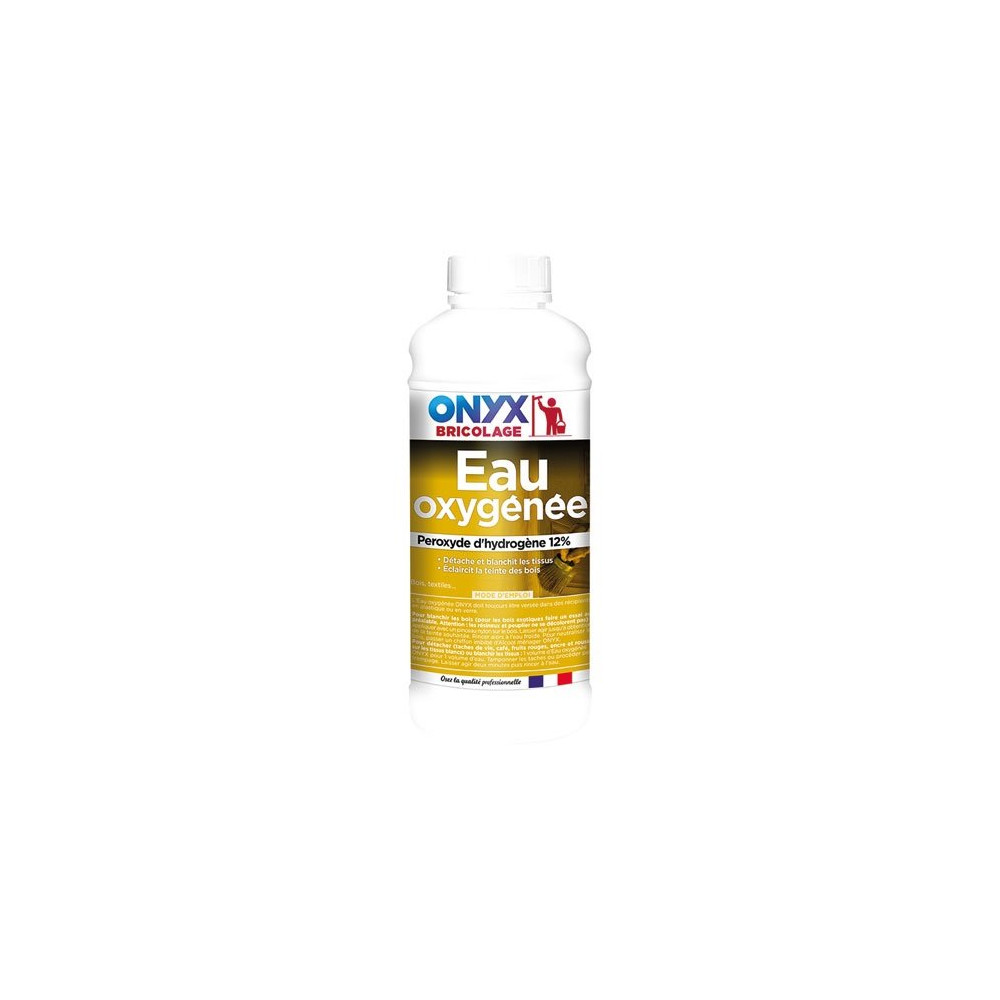 L'eau oxygénée Onyx est idéale pour blanchir et éclaircir la teinte de certains bois : frêne, | bouleau, chêne, érable, noyer Pour les bois exotiques, faire un essai au préalable. Les | résineux et peuplier ne se décolorent pas. | En dilution, lEau oxygénée enlève les taches de vin, de café, de fruits rouges, dencre et de | roussi, sur les tissus blancs. | Cest un excellent agent de blanchiment pour les tissus qui ne peuvent être traités au chlore