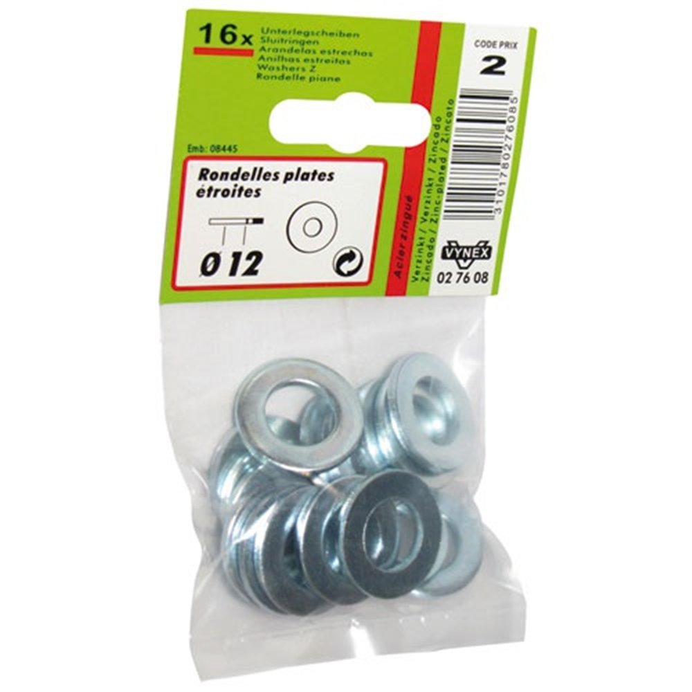 Indispensable dans toute boîte à outils, la rondelle plate étroite diamètre 12 mm VYNEX est une pièce de quincaillerie simple mais essentielle pour la qualité de vos assemblages. En acier zingué (AZI), elle offre une bonne résistance à la corrosion, ce qui la rend adaptée à des usages intérieurs comme dans des environnements légèrement humides.
