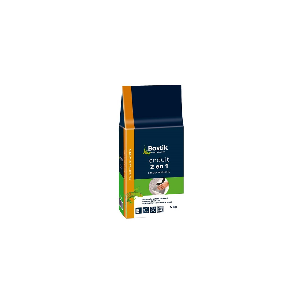 Simplifiez vos travaux de préparation murale avec l'enduit 2 en 1 BOSTIK en poudre, sac de 5 kg : un seul produit suffit pour reboucher les imperfections et lisser en finition, sans changer d'outil ni de mélange. Une approche efficace qui fait gagner du temps et réduit le nombre de produits à acheter.