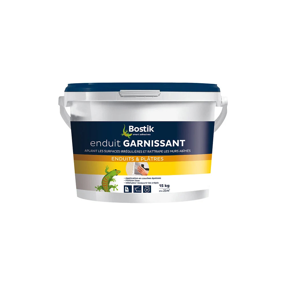 Redonnez une surface lisse et homogène à vos murs grâce à l'enduit garnissant BOSTIK en seau de 15 kg. Ce produit en pâte prêt à l'emploi est spécialement formulé pour les travaux de rénovation sur des supports à relief irrégulier, abîmés ou présentant des défauts de surface importants. Son format 15 kg est idéal pour couvrir des surfaces significatives en un minimum de passages.