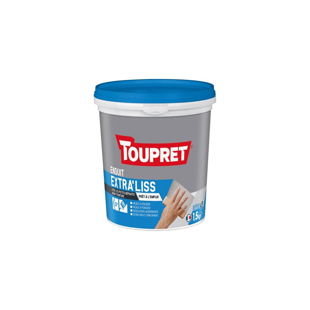 TOUPRET - Enduit lissage intérieur extra fin finitions - Blanc - 1,5 Kg