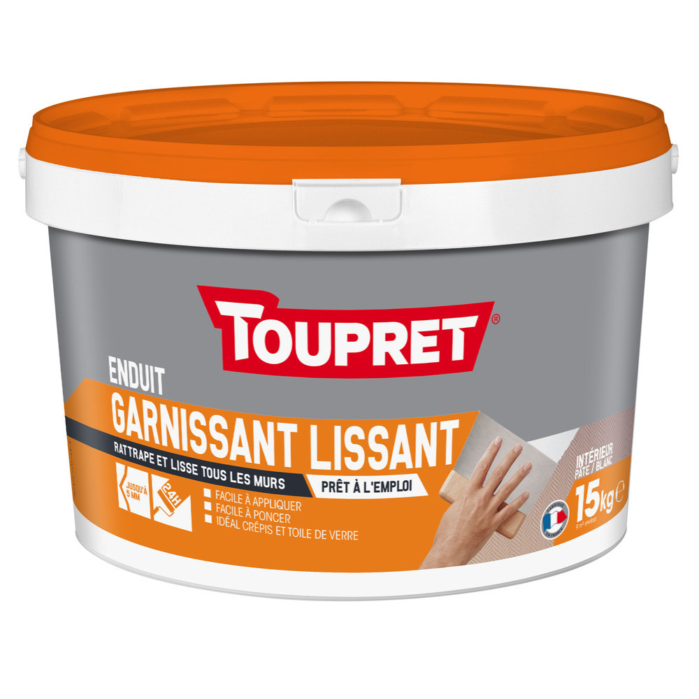 Conçu pour les travaux de rénovation intensive, l'Enduit Garnissant Lissant 2en1 Toupret en pâte, format 15 kg, est la référence pour remettre à neuf des murs fortement texturés ou dégradés. Sa double action — garnissage en épaisseur et lissage de finition — permet d'obtenir une surface prête pour la peinture sans multiplier les produits et les étapes.