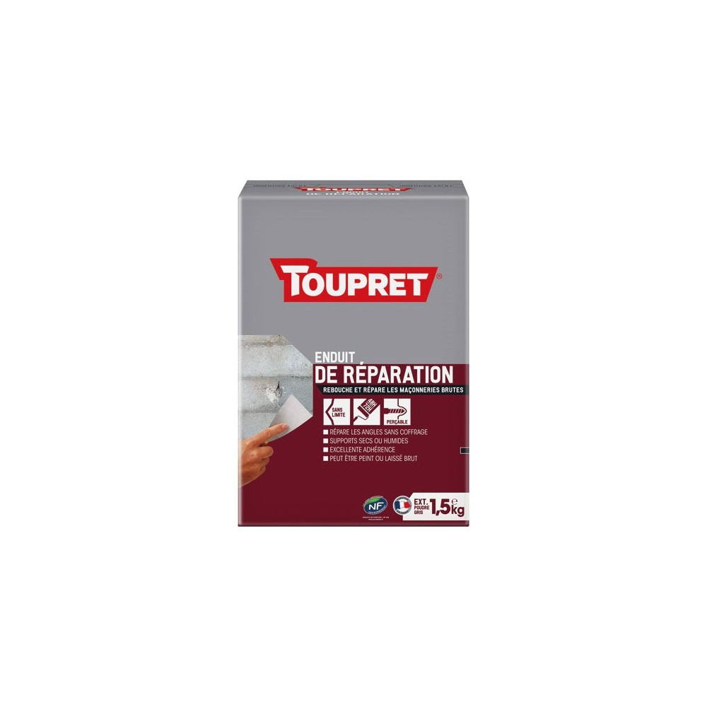 TOUPRET - Enduit de réparation extérieur poudre 1.5kg gris