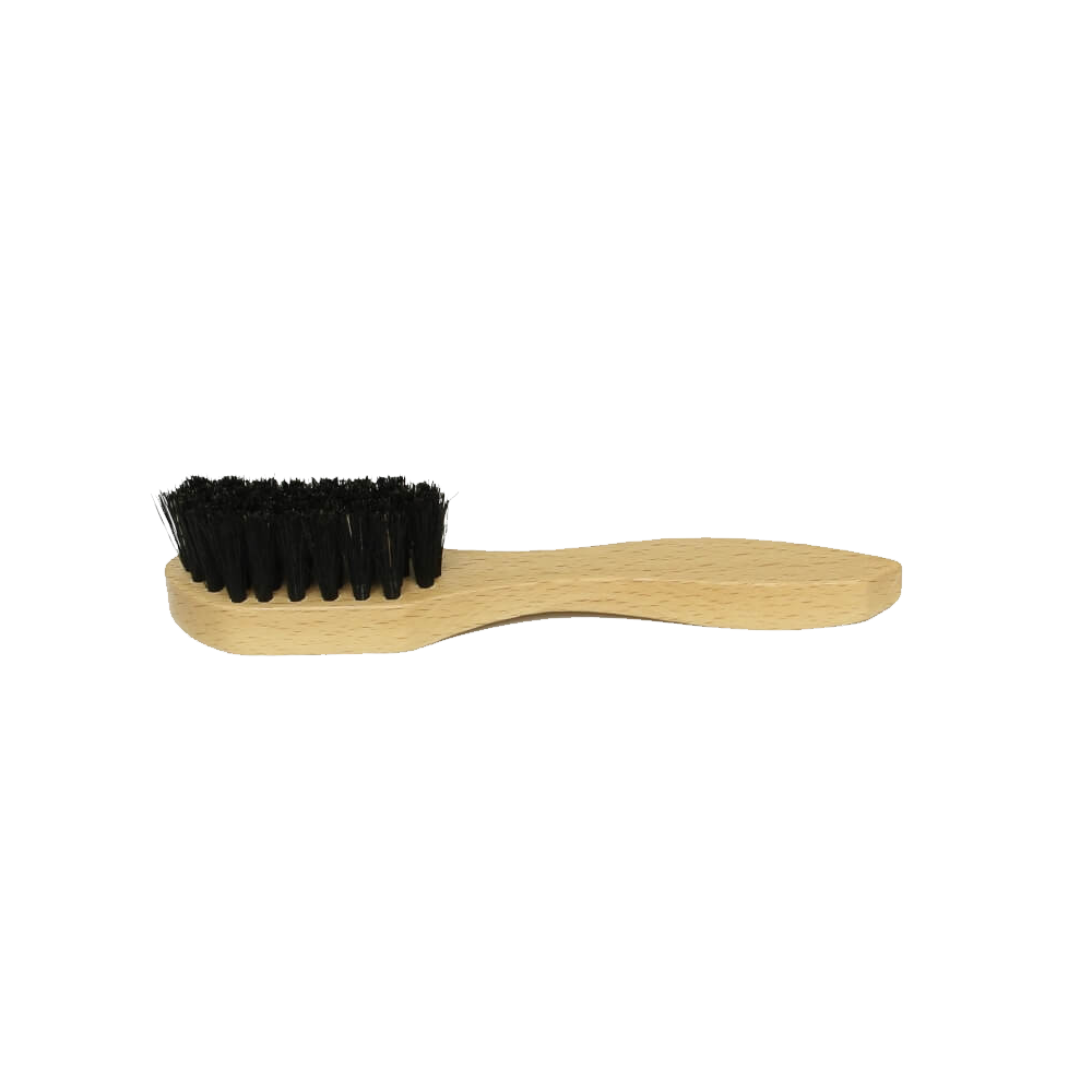 Manche Bois Hêtre vernis + poils en soie synthétique. | Elimine efficacement les dépôts terreux tout en préservant la fleur du cuir.