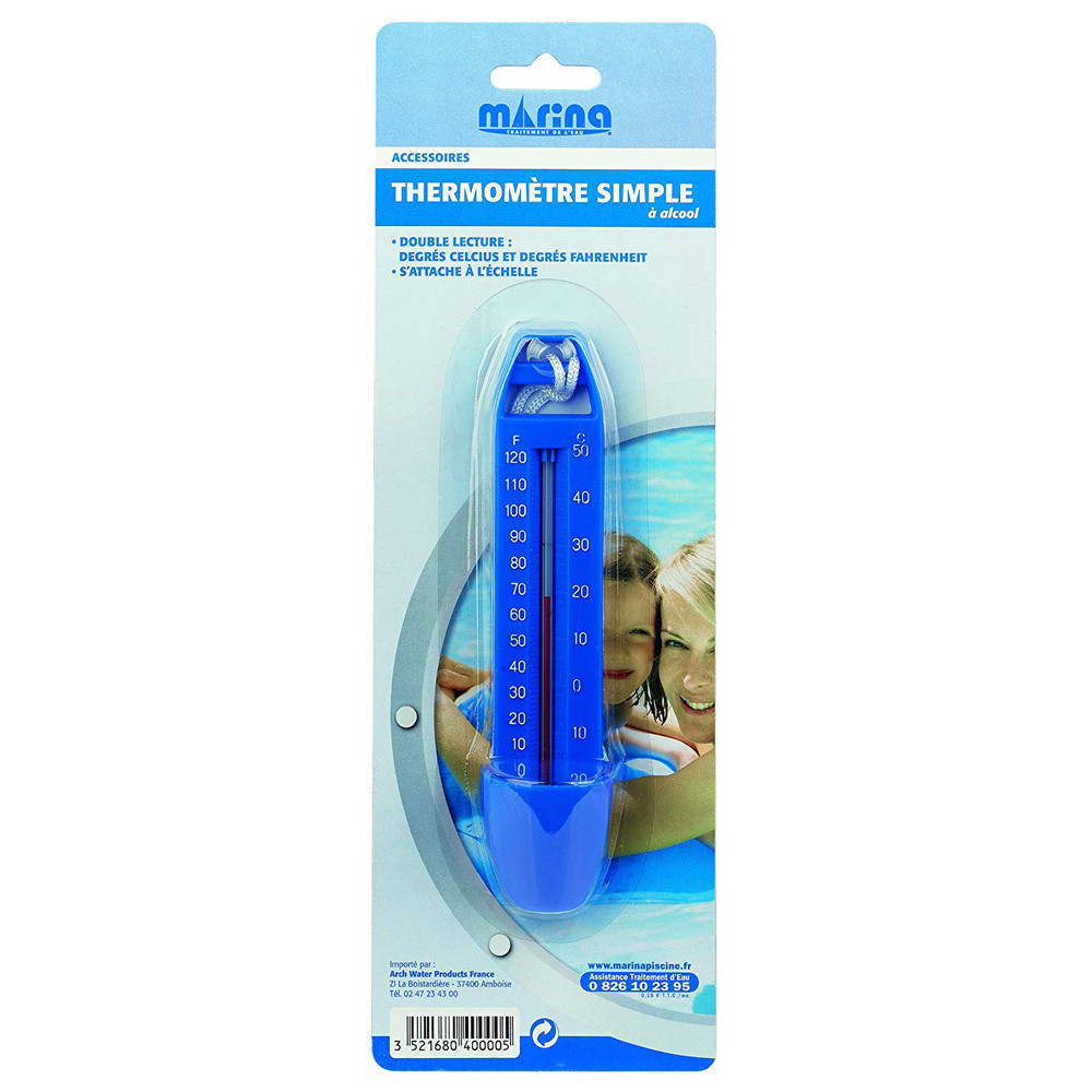 Connaître la température exacte de l'eau de sa piscine est un élément clé pour profiter de bains confortables et gérer efficacement les traitements chimiques. Le thermomètre simple MARINA est l'outil indispensable de tout baigneur averti : facile à lire, pratique à installer et fiable au quotidien.