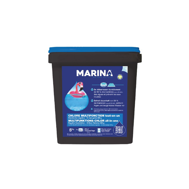 Simplifiez l'entretien de votre piscine avec les galets multifonction MARINA au format 200g, vendus en seau de 5kg soit 25 galets. Ce traitement tout-en-un couvre l'ensemble des besoins essentiels d'une piscine familiale en une seule formule, sans avoir à jongler entre plusieurs produits.