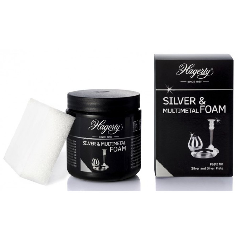 Grâce à cette polyvalence, la Silver Foam Hagerty convient aussi bien pour les couverts et services de table que pour les statuettes en étain, les ustensiles en acier ou les objets décoratifs en métal argenté. Un seul produit suffit pour prendre soin de toute votre collection métallique.