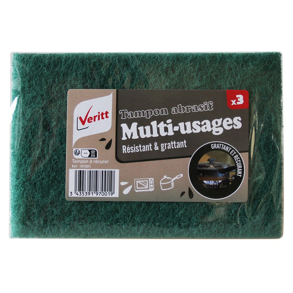 Les Tampons à Récurer VERITT – Lot de 3 sont des accessoires d'entretien robustes pensés pour les travaux de nettoyage intensif. Leur fibre verte abrasive attaque efficacement les incrustations tenaces, les résidus carbonisés et les dépôts calcaires sur une grande variété de surfaces résistantes, sans effort excessif.