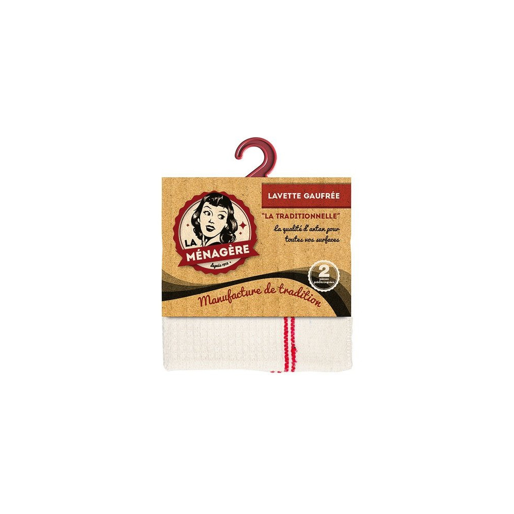 Depuis 1913, La Ménagère perpétue un savoir-faire textile français d'exception. La lavette gaufrée 30 x 70 cm en est l'illustration parfaite : conçue en pièce double avec un tissage gaufré en chevrons et des filets rouges caractéristiques, elle incarne l'efficacité du nettoyage artisanal allié à la durabilité des fibres recyclées. Un produit qui fait écho aux valeurs d'économie circulaire et de production responsable.