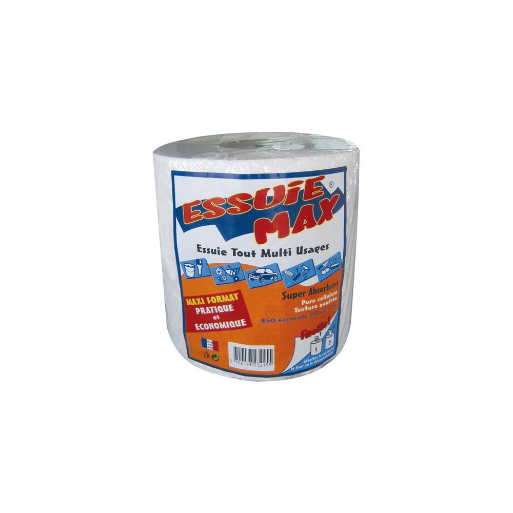 Avec ses 450 feuilles par rouleau, cette bobine est particulièrement adaptée aux foyers nombreux, aux espaces de travail ou aux professionnels souhaitant réduire la fréquence de réapprovisionnement. Elle convient aussi bien à l'essuyage des surfaces qu'au nettoyage des mains, à l'absorption des projections ou au dépoussiérage rapide. Disponible chez Brikoleur, elle s'intègre parfaitement dans un usage ménager comme dans un contexte d'atelier ou de bricolage.
