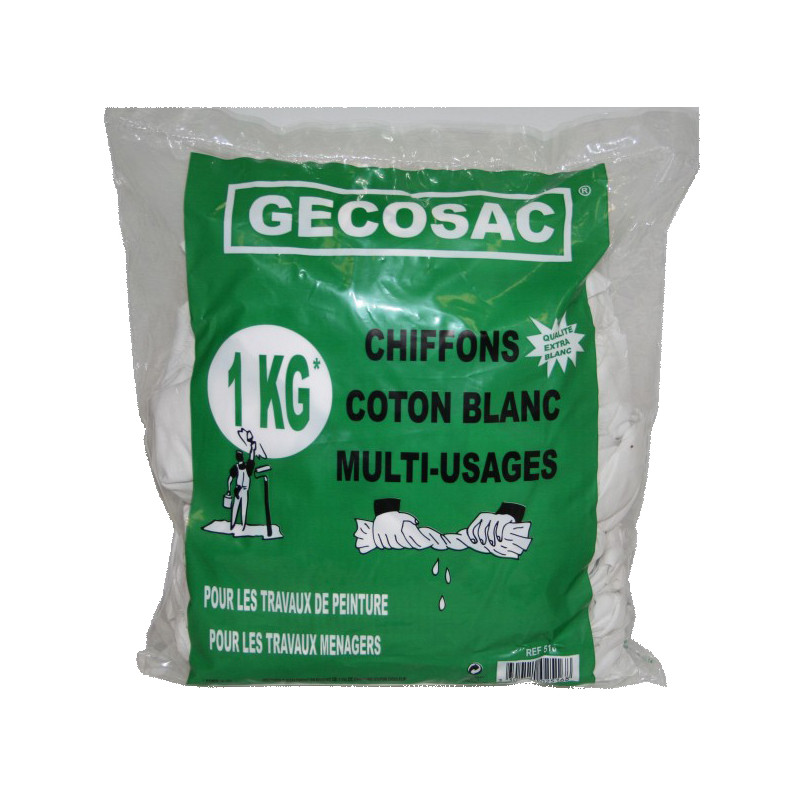 Polyvalents et économiques, les Chiffons Coton Blanc Multi-Usages GECOSAC en sac de 1 kg sont les alliés indispensables de tous les travaux, qu'ils soient ménagers ou liés à la peinture et au bricolage. Fabriqués en coton blanc naturel, ils offrent une excellente capacité d'absorption et une douceur préservant les surfaces les plus délicates lors des essuyages et nettoyages.