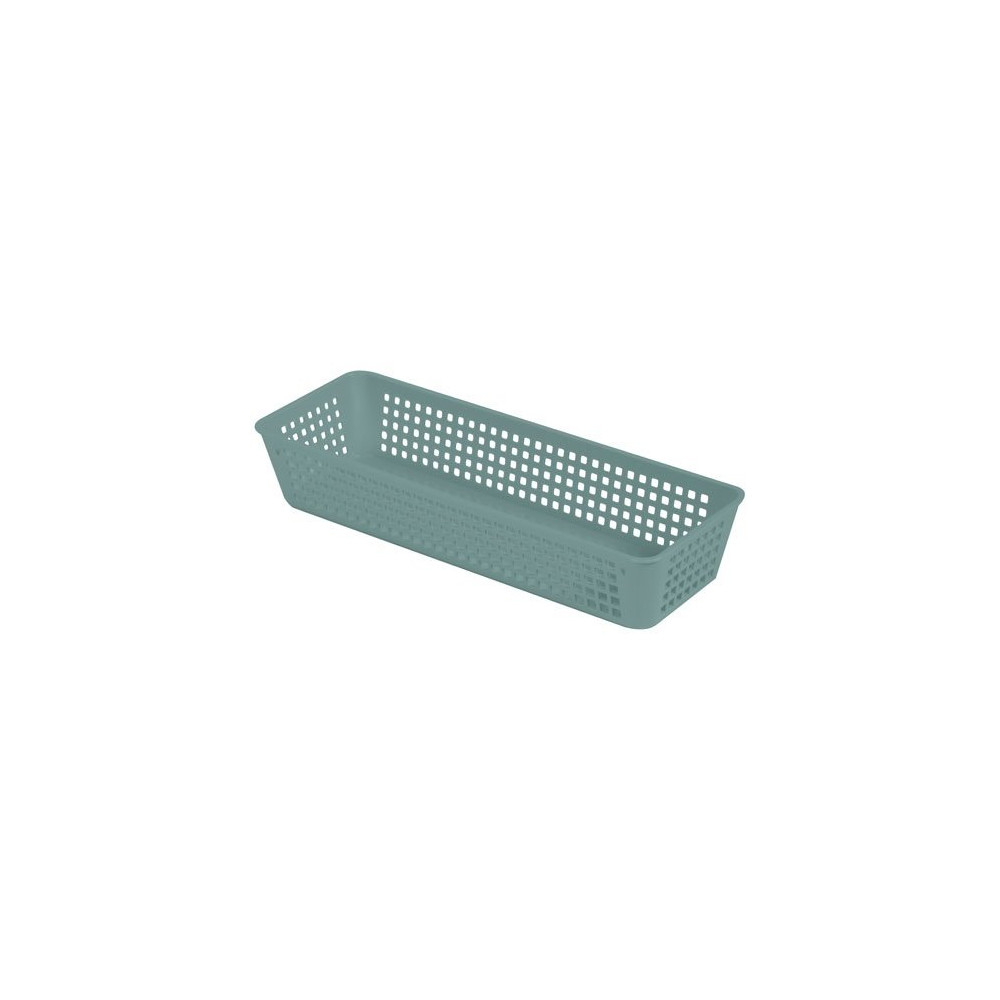 Avec ses dimensions soigneusement étudiées — 27,5 cm de longueur, 10 cm de largeur et 5 cm de hauteur — cette rangette s'adapte parfaitement aux étagères standard et aux espaces restreints. Sa teinte vert eucalyptus apaisante s'inscrit dans les tendances décoratives actuelles et permet de personnaliser ses rangements avec style.