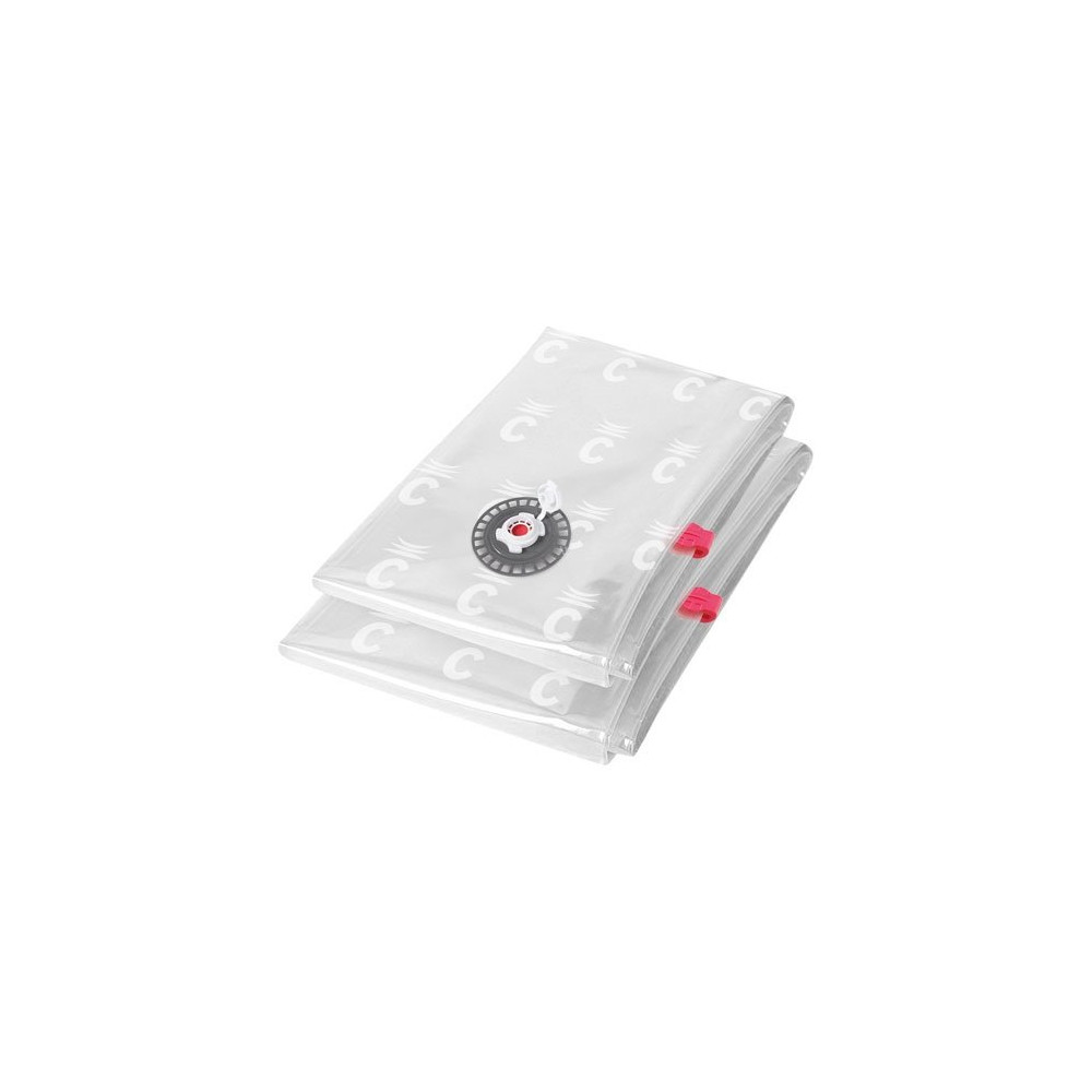 Libérez de l'espace dans vos armoires et vos placards grâce au lot de sacs de compression AspiSpace Compactor, comprenant un sac taille M et un sac taille L. Conçus pour être utilisés avec un aspirateur, ils permettent de réduire considérablement le volume de vos textiles volumineux en extrayant l'air emprisonné.