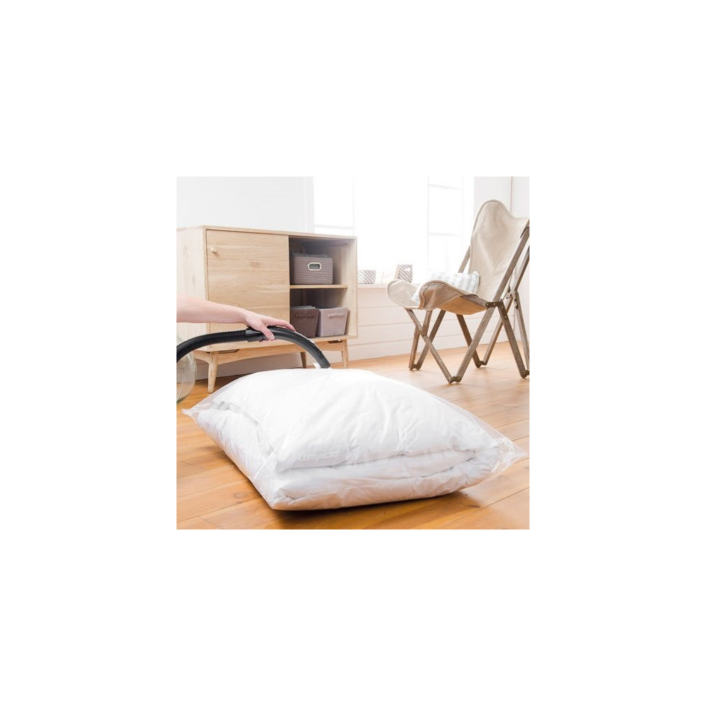 Ce grand format est particulièrement recommandé pour les couettes, couvertures, pulls épais, doudounes et vêtements d'hiver. Pour un résultat optimal, assurez-vous que les textiles sont propres et secs avant de les emballer, puis vérifiez l'étanchéité de la fermeture avant de lancer l'aspiration.