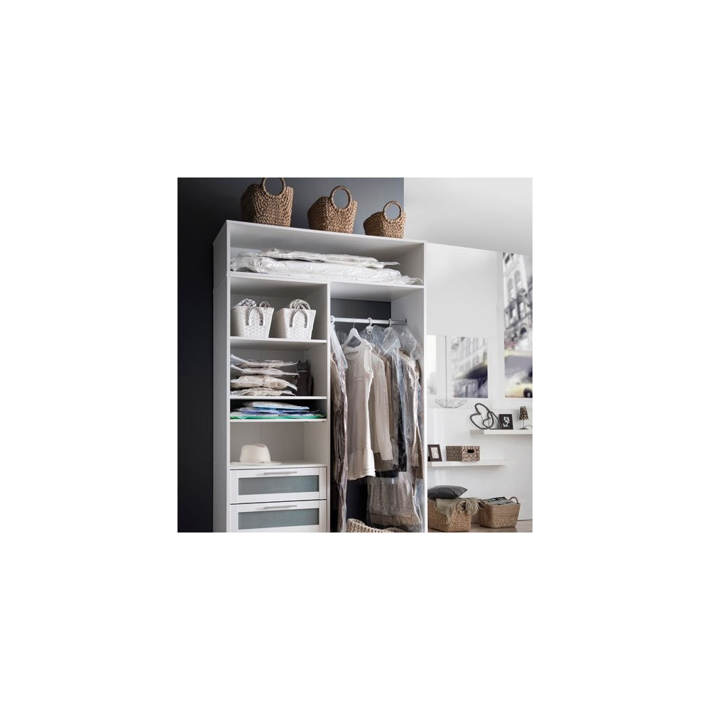 Conçu en nylon et polyéthylène, ce sac associe robustesse et étanchéité pour une protection optimale de vos vêtements. En chassant l'air, il crée une barrière efficace contre la poussière, les acariens et l'humidité, préservant ainsi la qualité de vos textiles pendant toute la durée du stockage.