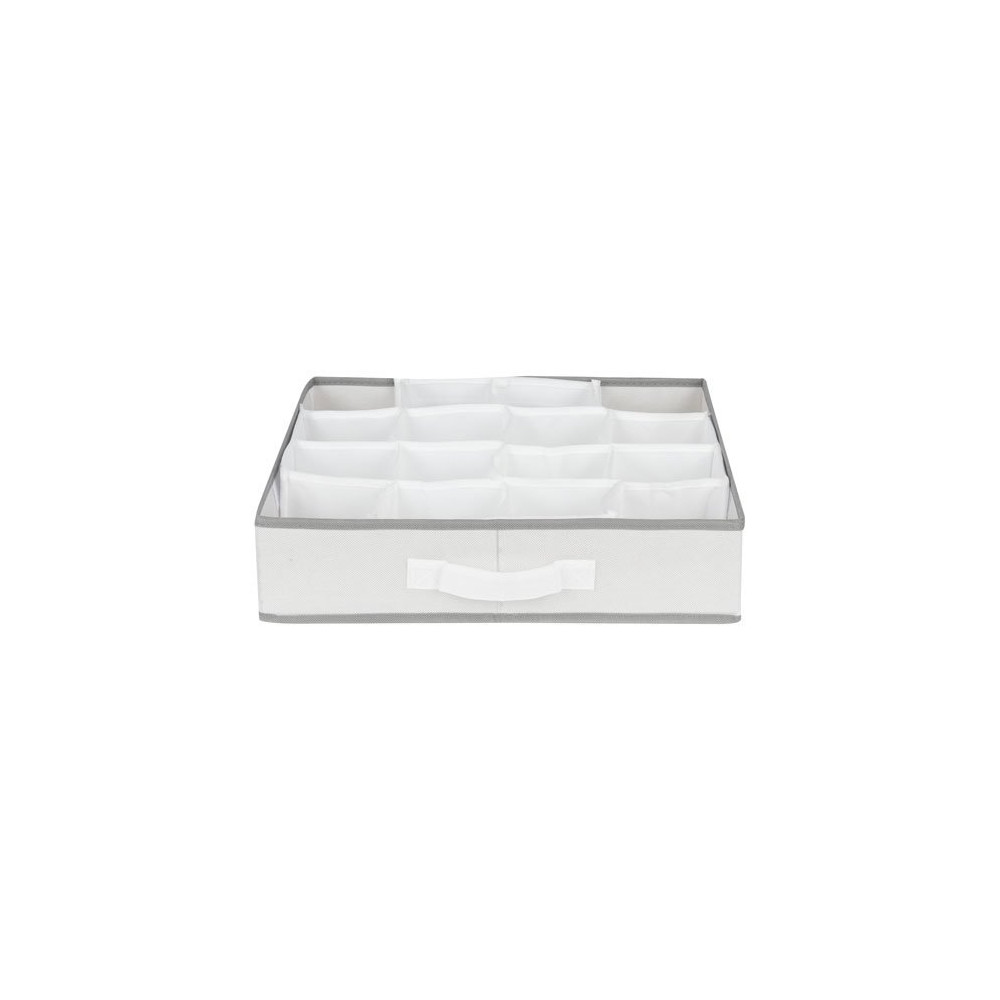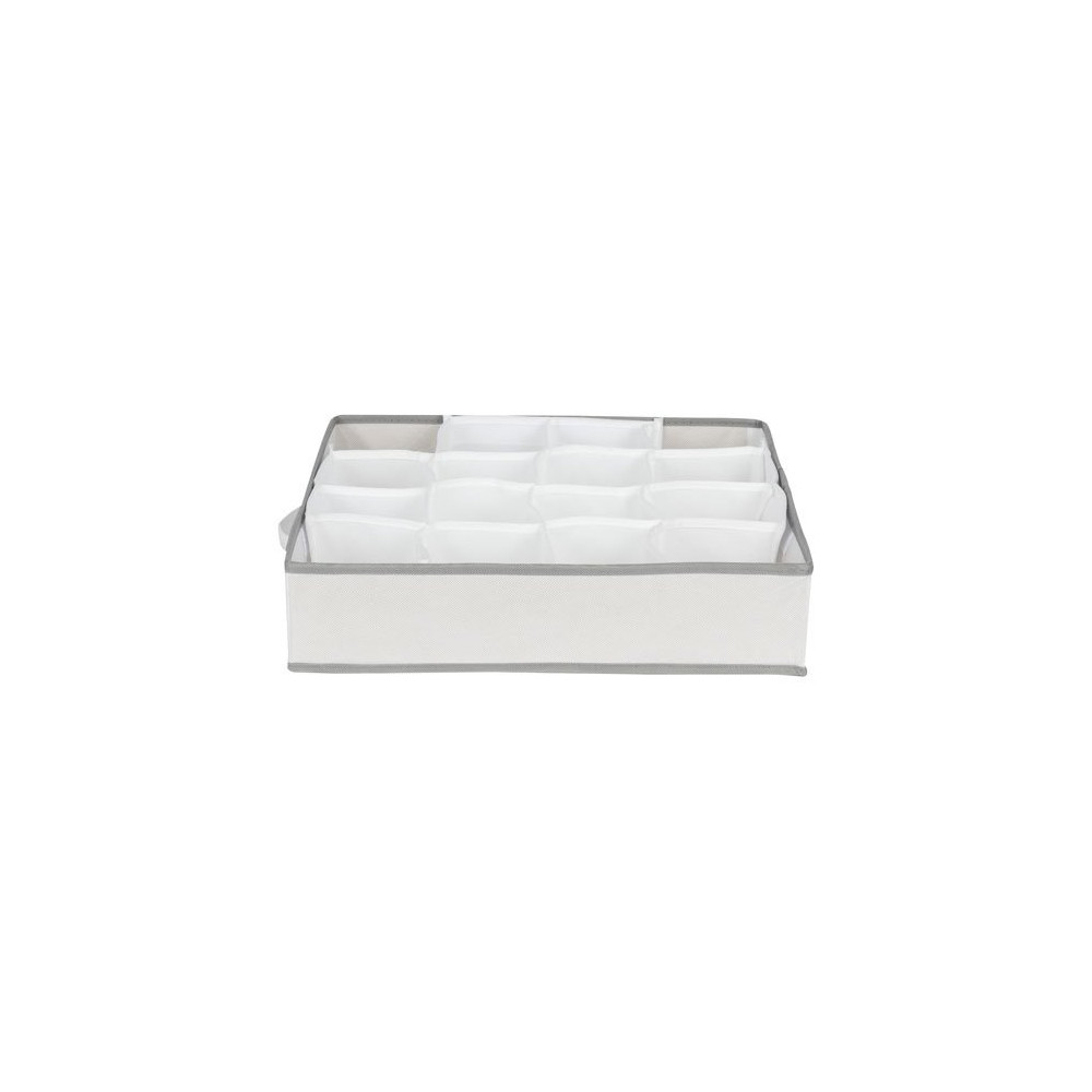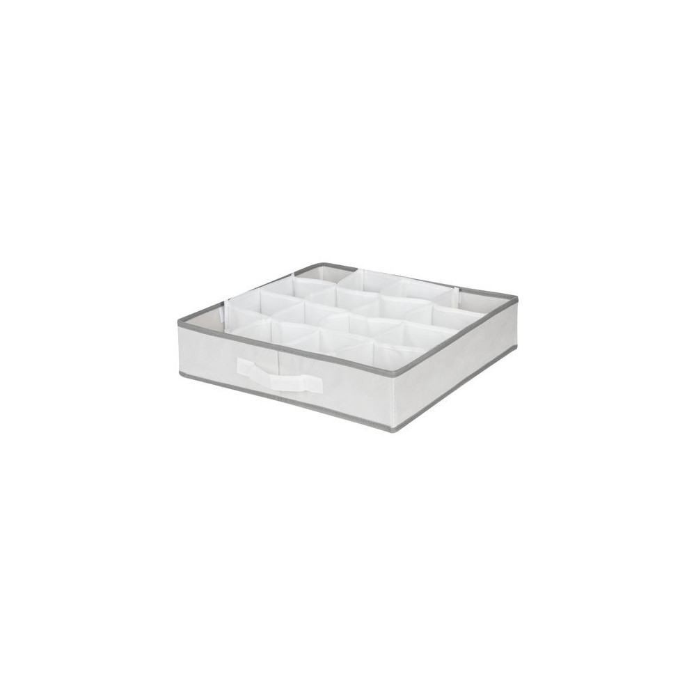 Confectionné en fibre non tissée 100 % polypropylène, ce séparateur est à la fois souple, léger et durable. Son coloris blanc liseré gris s'intègre harmonieusement dans tous les intérieurs. Avec ses dimensions de 40 x 40 x h9 cm, il s'adapte à la majorité des tiroirs standards tout en offrant 16 compartiments distincts pour un tri précis.