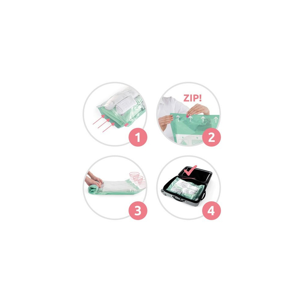 Ces sacs conviennent aussi bien au rangement à domicile que pour les voyages ou les déplacements prolongés. Pour un résultat optimal, veillez à bien fermer la zip avant de commencer à rouler. Découvrez chez Brikoleur toute la gamme de sacs de compression Compactor pour gagner en espace sans effort.