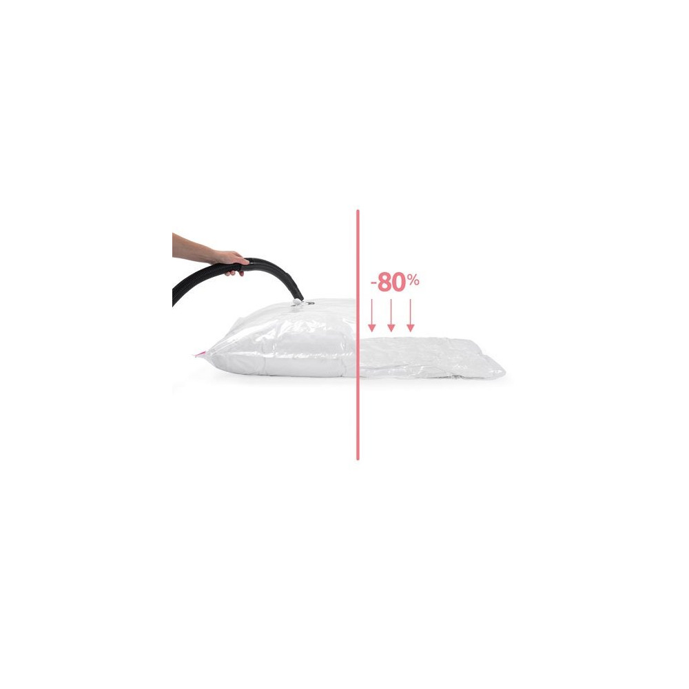 Conseil d'utilisation : Insérez votre couette dans le sac, fermez hermétiquement la fermeture, puis comprimez manuellement en appuyant sur le sac pour en chasser l'air. Pour une compression maximale, utilisez-le avec un aspirateur si la valve le permet.