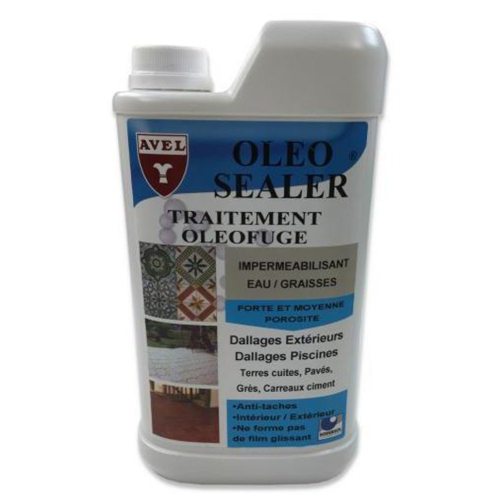 L'Oléo Sealer AVEL en bidon 1L est un traitement oléofuge et hydrofuge haute performance conçu pour protéger durablement les dallages contre les infiltrations d'eau et les taches de graisses. Formulé pour les surfaces à forte et moyenne porosité, il s'adapte à une grande variété de supports intérieurs et extérieurs.
