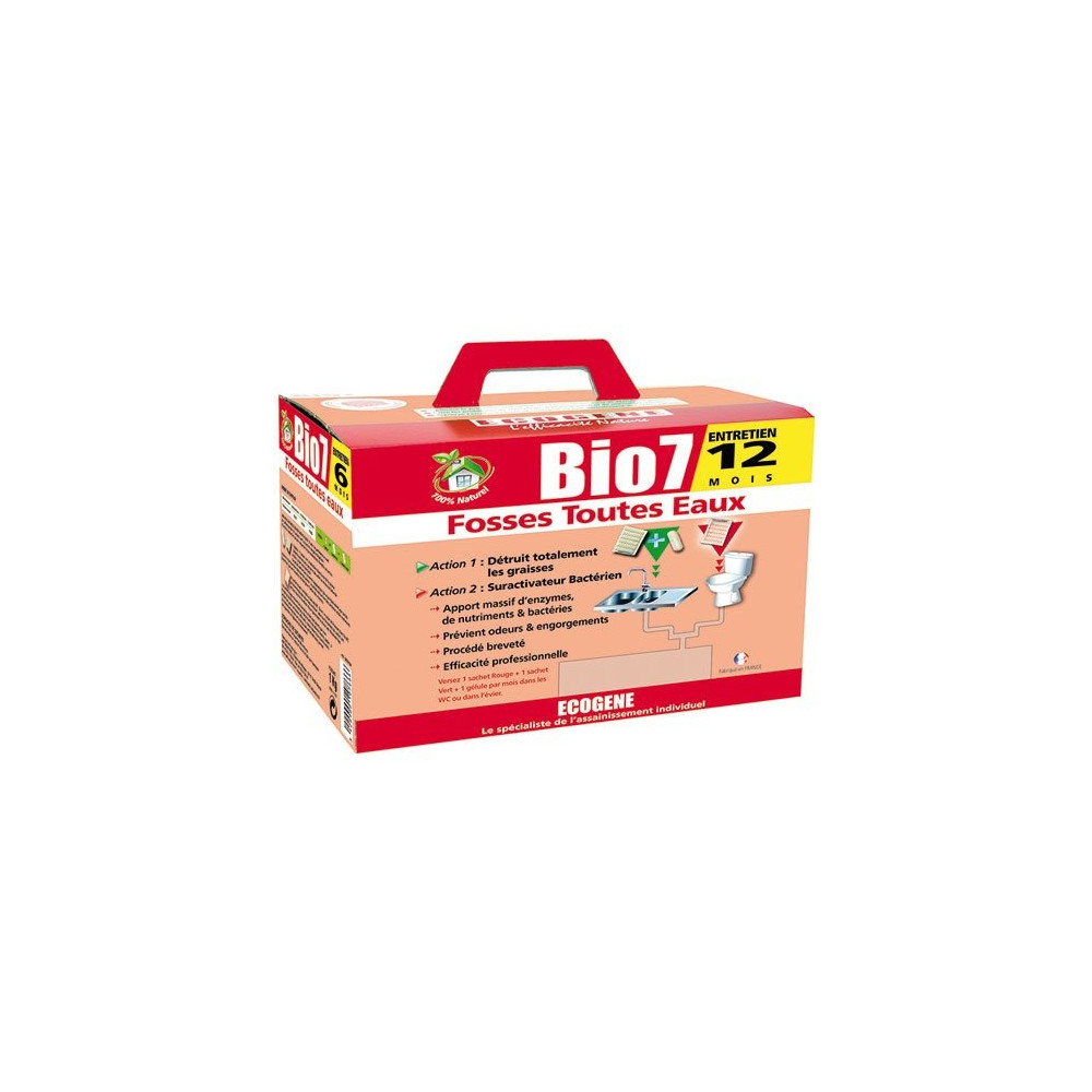 Maintenir une fosse toutes eaux en bon état de fonctionnement est indispensable pour éviter engorgements coûteux et mauvaises odeurs. Le Bio 7 Entretien Fosses Toutes Eaux ECOGENE en format 2 kg est une solution biologique double action, conçue pour assurer jusqu'à 12 mois d'entretien continu de votre installation d'assainissement.