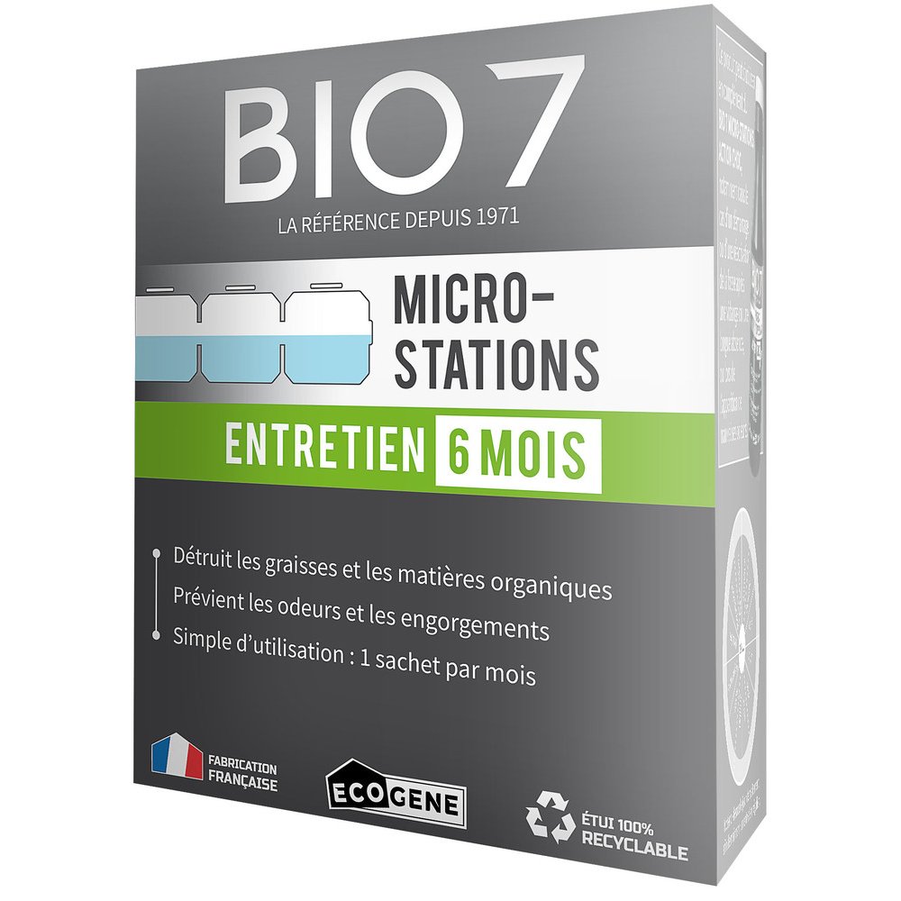 L'entretien régulier d'une micro-station d'épuration est indispensable pour garantir son efficacité et sa longévité. Le Bio7 Entretien Micro-Station Ecogene en poudre 480 g est spécialement formulé pour optimiser les performances biologiques de ces systèmes d'assainissement individuel, en réactivant et en renforçant la flore bactérienne présente dans le réacteur.