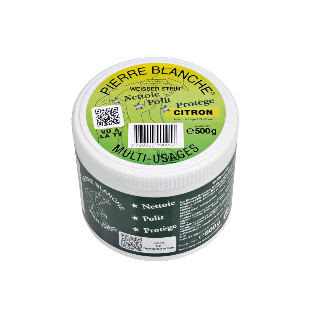 La pierre blanche agit en trois temps : elle nettoie en profondeur les graisses et dépôts tenaces, polit les surfaces pour leur redonner brillance et éclat, et protège durablement les matières traitées. Sa texture légèrement abrasive mais douce ne raye pas, et son origine 100 % naturelle en fait un choix idéal pour les cuisines où les aliments sont manipulés au quotidien.