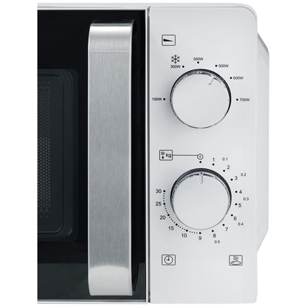 Ce micro-ondes dispose de 6 niveaux de puissance distincts, permettant d'adapter précisément la chaleur selon la nature des aliments. Parmi eux, 2 programmes de décongélation gèrent en douceur la remise en température des aliments surgelés, y compris les plus délicats comme les pâtisseries ou les poissons. La minuterie 30 minutes avec signal sonore assure un contrôle précis de la durée de cuisson.