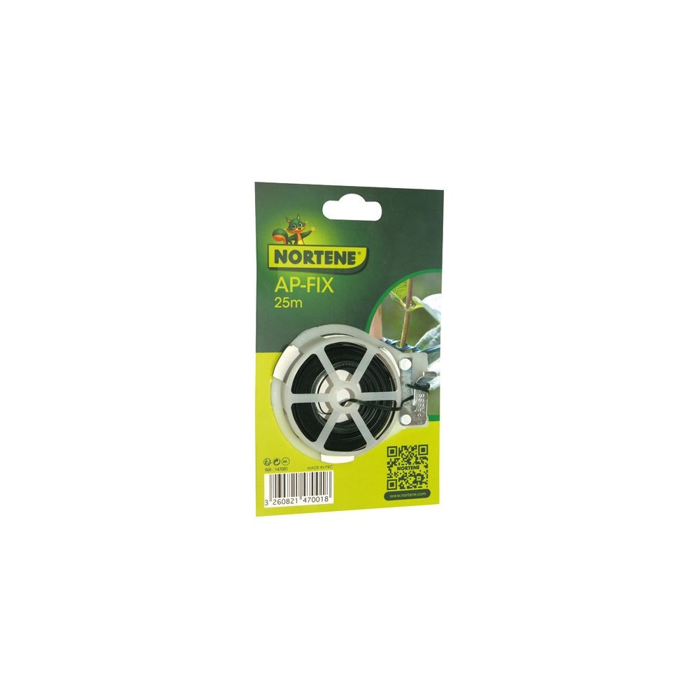 Conditionné en blister de 25 mètres, ce lien combine un cœur en fil de fer qui assure la rigidité et la tenue, avec une gaine plastique verte souple qui protège à la fois le fil de la corrosion et les tiges des plantes des frottements. Sa section ronde permet de réaliser des nœuds propres et ajustables en quelques secondes.