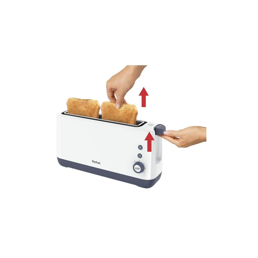 Les fonctions décongélation et réchauffage évitent de passer par le four pour remettre à température un toast ou griller directement du pain sorti du congélateur. Idéal pour les matins pressés, ce grille-pain Tefal répond aux besoins du quotidien avec efficacité et simplicité.