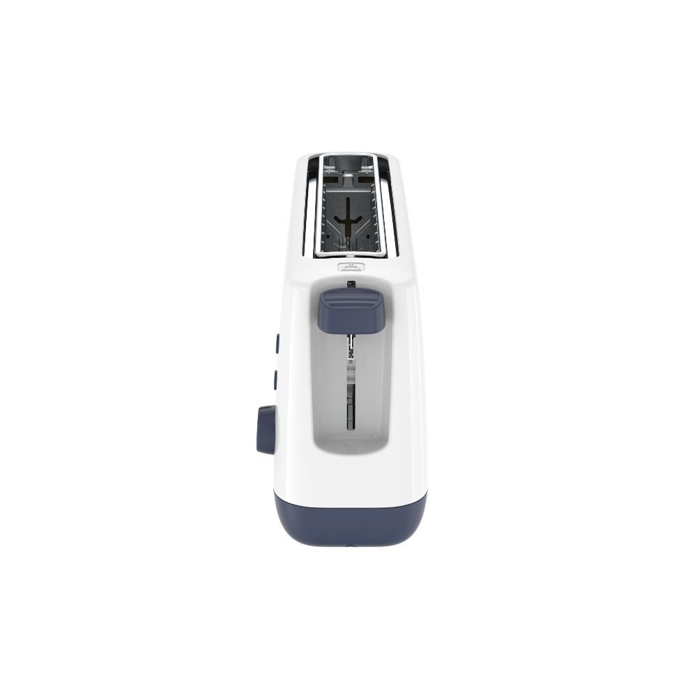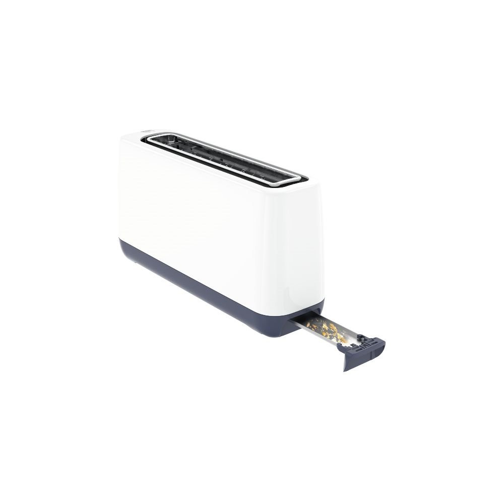 Grille-pain 1 fente - Minim Toaster - Ultra-compact, il prend le moins d'espace possible sur votre plan de travail - Grille les toasts comme les tranches de baguettes grâce à sa fente à largeur variable - Thermostat 7 positions pour obtenir la qualité de grillage souhaité - Fonctions Décongélation et Réchauffage avec témoins lumineux - Tiroir ramasse-miettes amovible - Remontée extra-haute pour extraire même les plus petites tranches - Coloris Blanc - Puissance 850 W - Garantie 2 ans.